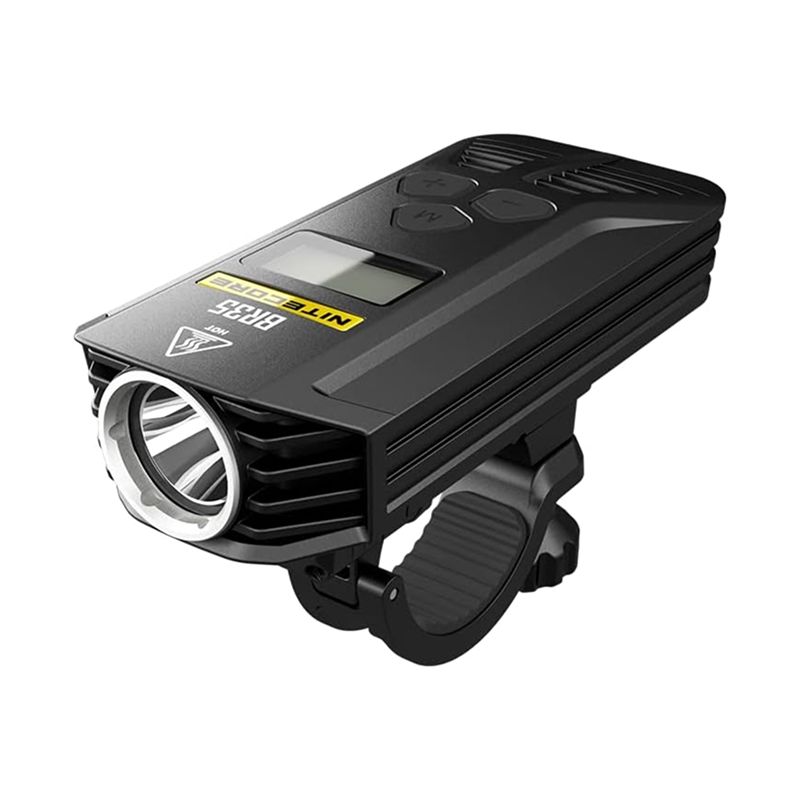 The Nitecore Bike Light features an innovative dual distance beam system mimicking automotive headlights. With 1800 lumens maximum output, it creates a unique lighting pattern illuminating both near and far distances simultaneously.