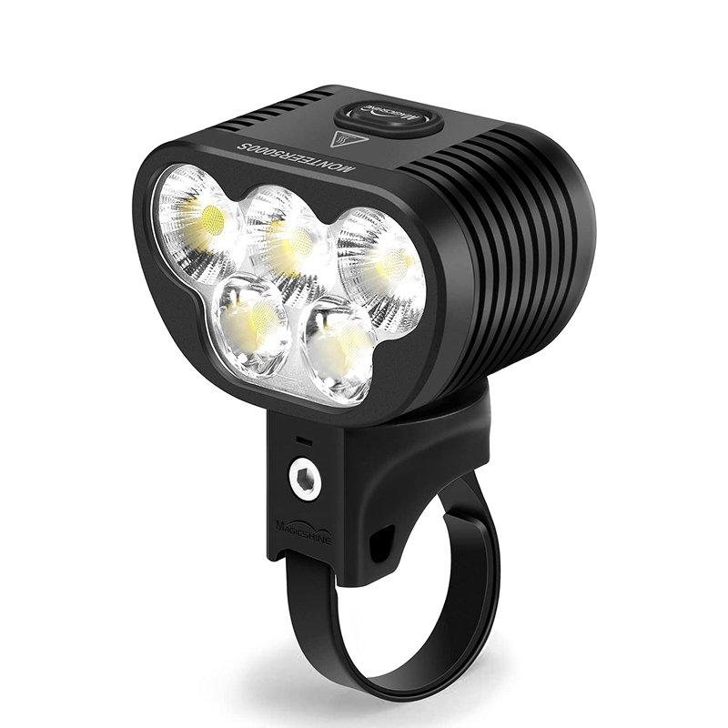 The Magicshine Bike Light makes a bold statement with its colossal 5000 lumen maximum output. This powerhouse utilizes five Luminus SST-40 LEDs in two distinct groups, which allows cyclists to activate either beam independently or combine them for maximum visibility.