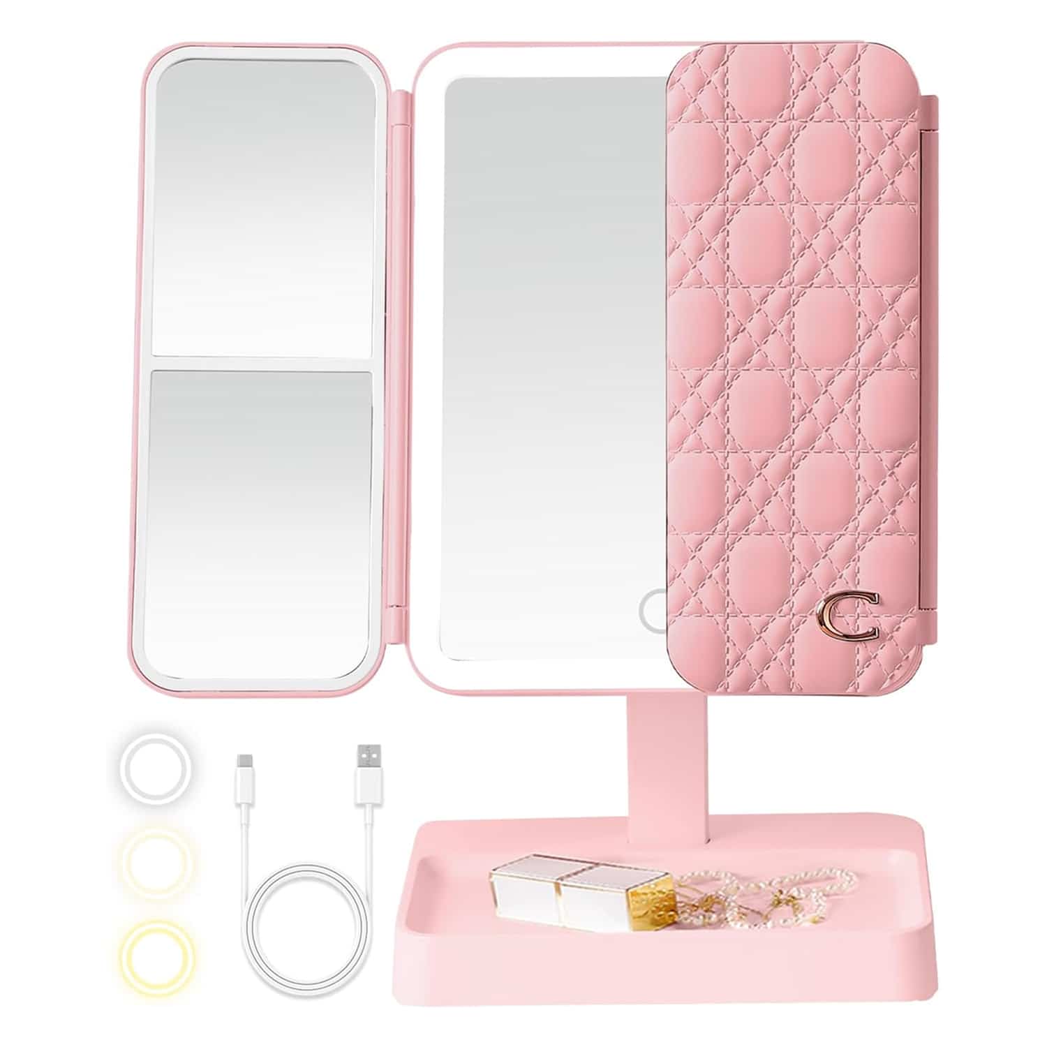 Featuring an impressive 83 LED bulbs with three-color temperature settings, this mirror delivers 360-degree uniform fill light that eliminates shadows and provides studio-quality illumination perfect for any lighting condition. ✨