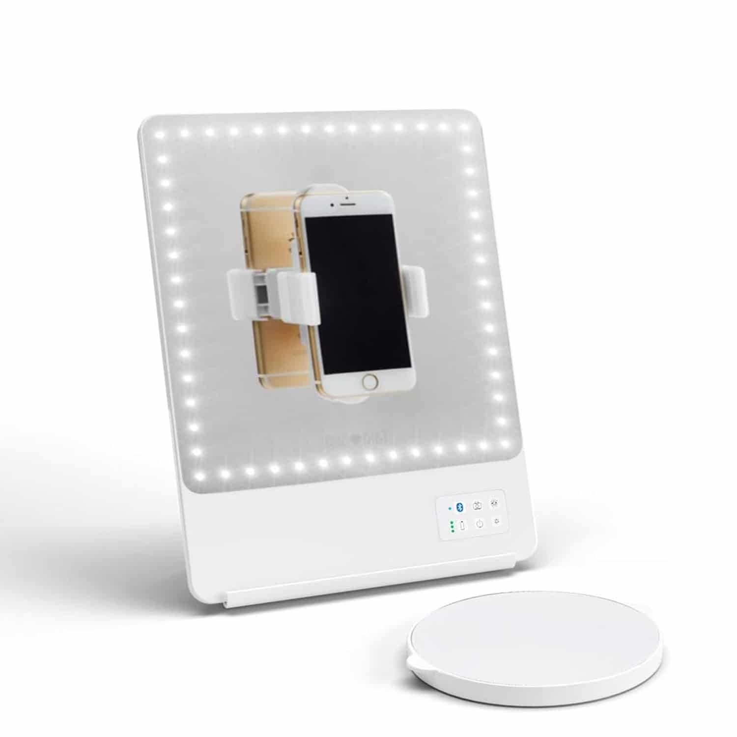 Its Bluetooth selfie function and magnetic phone holder transform the mirror into a content creation tool, perfect for recording tutorials, taking flawless selfies, or participating in video calls. The customized HD daylight lighting features five dimming stages for precise brightness control.