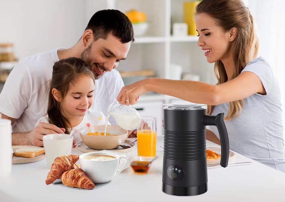 The Foamtasty Milk Frother stands out as a revolutionary 4-in-1 device that brings professional barista capabilities to your kitchen. 🌟