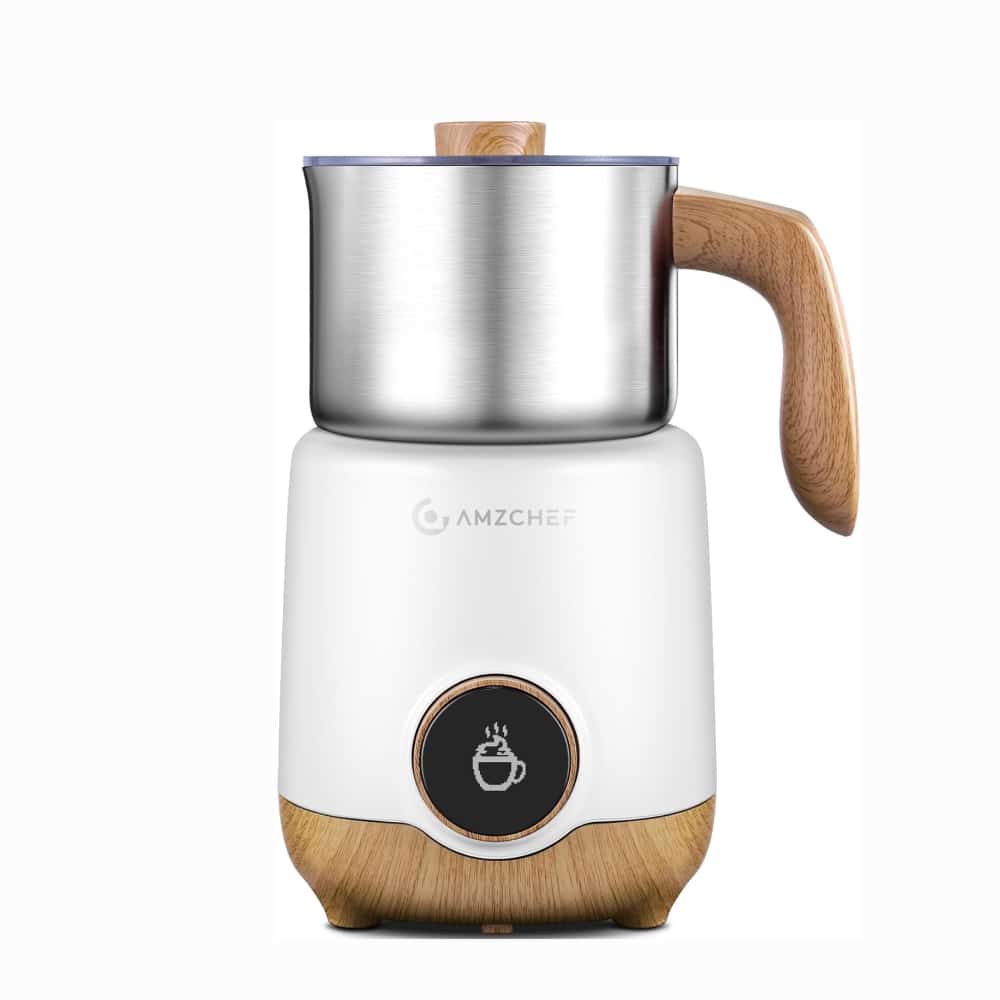 The AMZCHEF Milk Frother excels with its comprehensive 8-in-1 functionality, making it a versatile addition to any kitchen. This model stands out for its ability to handle various milk types, from dairy to plant-based alternatives.