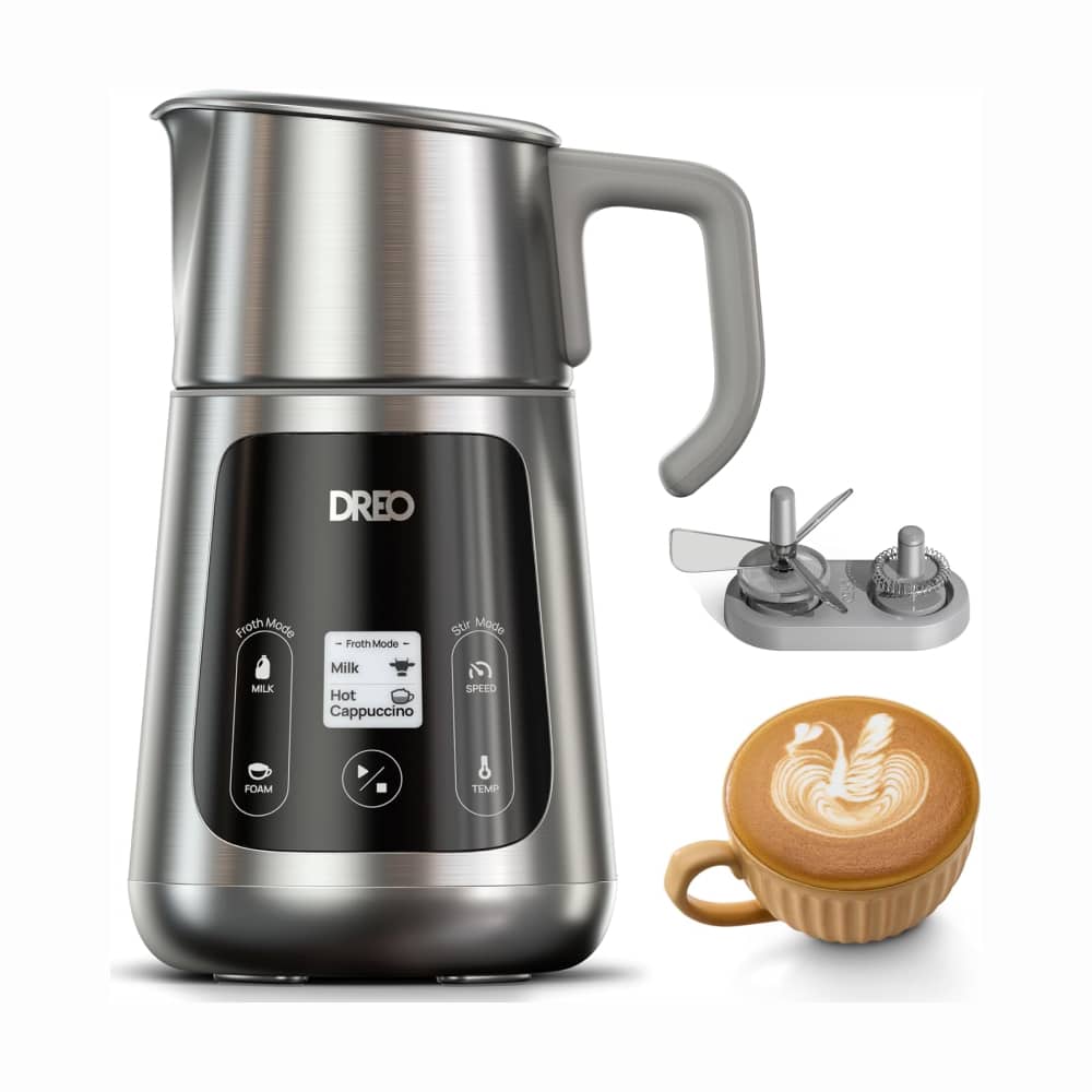 The Dreo Milk Frother distinguishes itself with its advanced microfoam technology, capable of creating three different textures perfect for latte art. Its multi-stage technology replicates professional barista techniques.